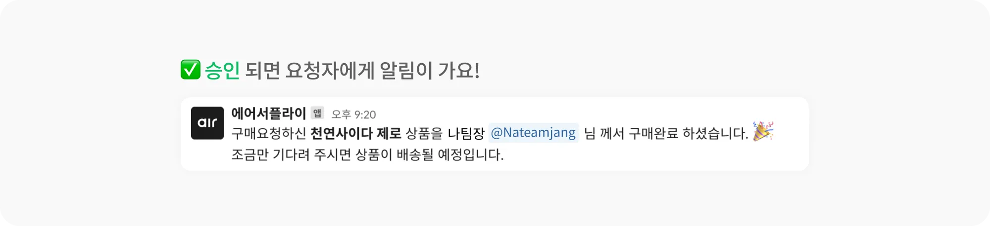 • 관리자도 일반 직원처럼 슬랙으로 구매를 요청할 수 있어요.