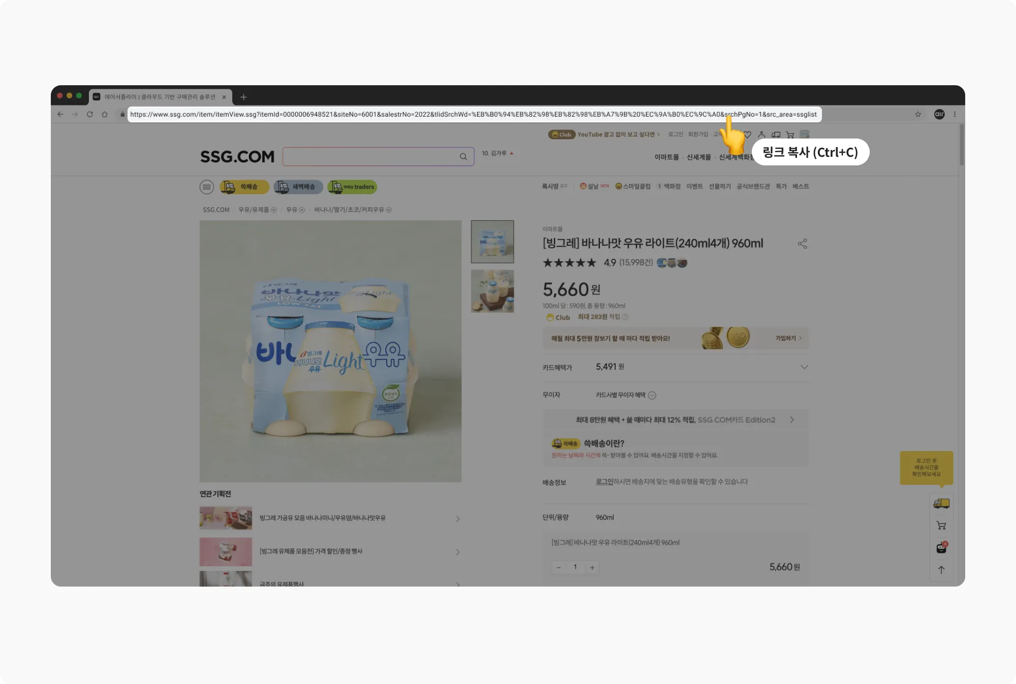 1. 요청하려는 상품의 ‘상세페이지’ 링크를 복사해 주세요.