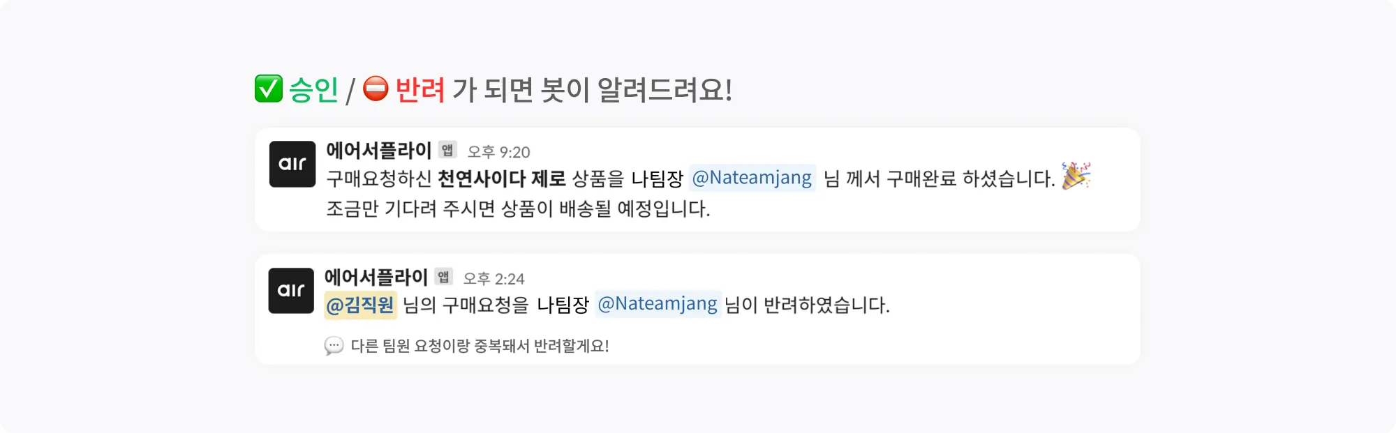 6. 승인 또는 반려가 되면 봇에게 메시지를 받게돼요.
