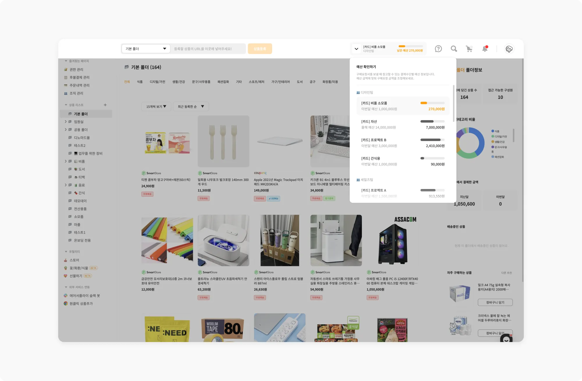 ‘예산’ 기능은 회사의 지출을 계획적으로 사용하고, 관리할 수 있도록 도와주는 기능이예요. 결제할 수 있는 금액을 미리 설정하고, 예산 사용 현황을 실시간으로 확인하며 결제할 수 있어요.