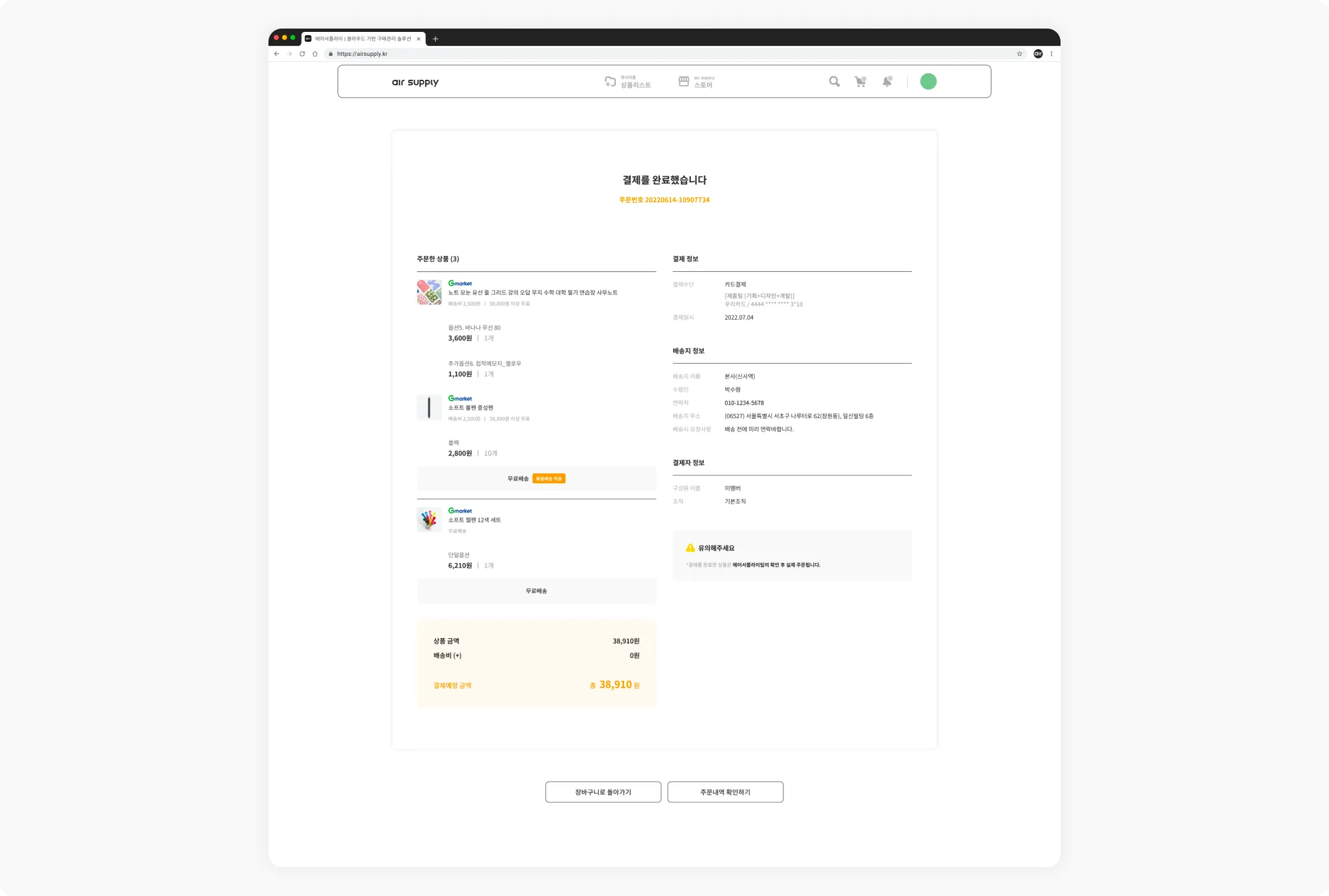 *주문내역은 마이페이지에서 확인할 수 있어요.